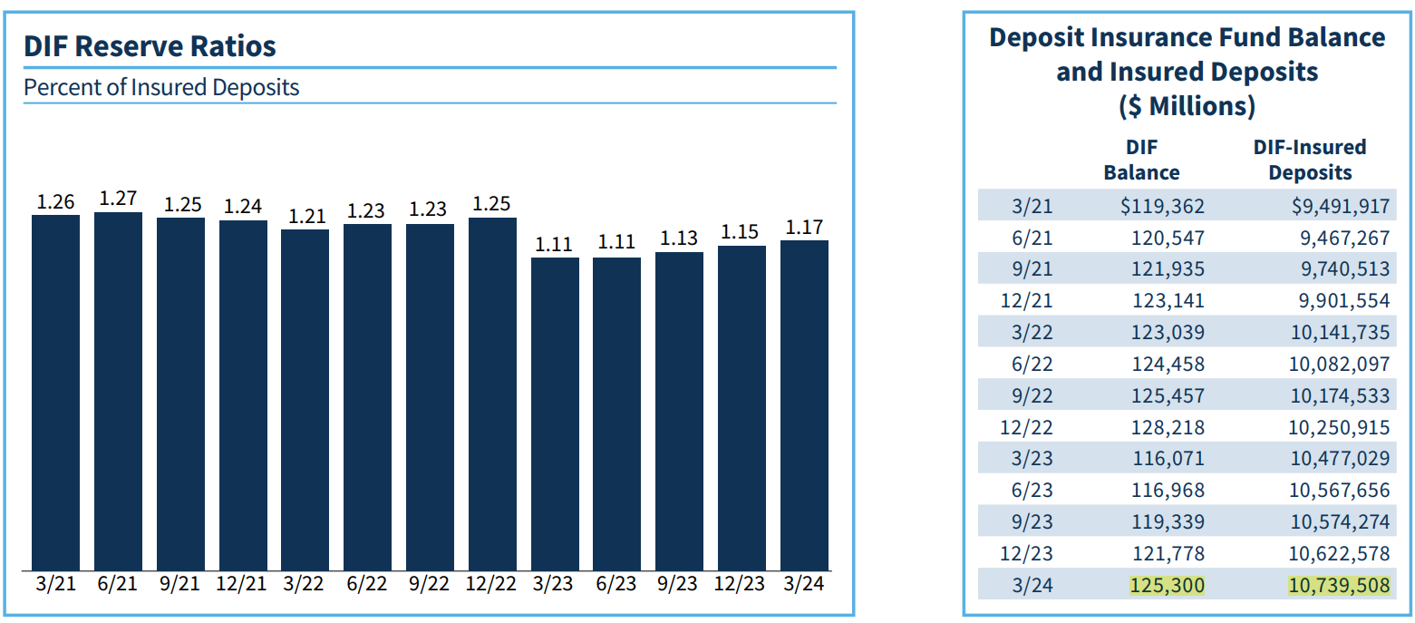 Số dư trong Quỹ bảo hiểm tiền gửi (DIF) của FDIC hiện là USD 125.3 tỷ – bảo hiểm cho tổng USD 10,738 tỷ tiền gửi tại 4568 ngân hàng Mỹ.