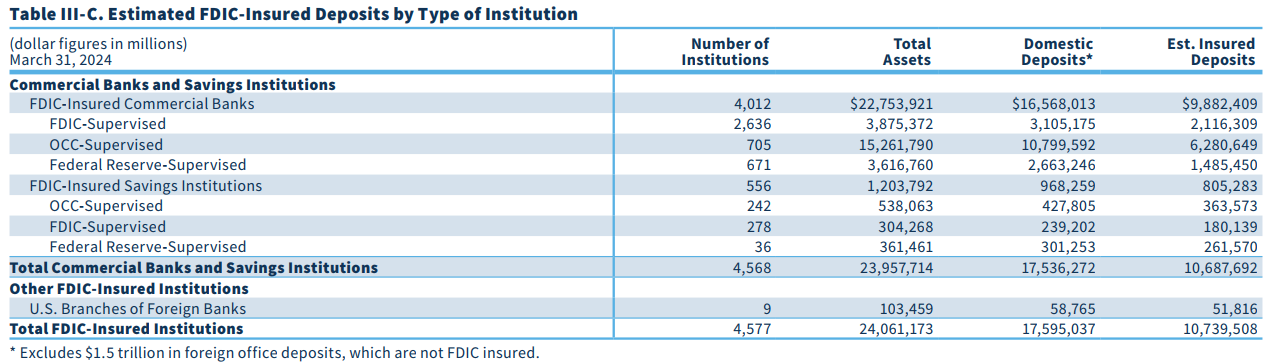 FDIC bảo hiểm cho các khoản tiền gửi (deposit) tại 4,568 ngân hàng thương mại / tổ chức tiền gửi trên khắp nước Mỹ.