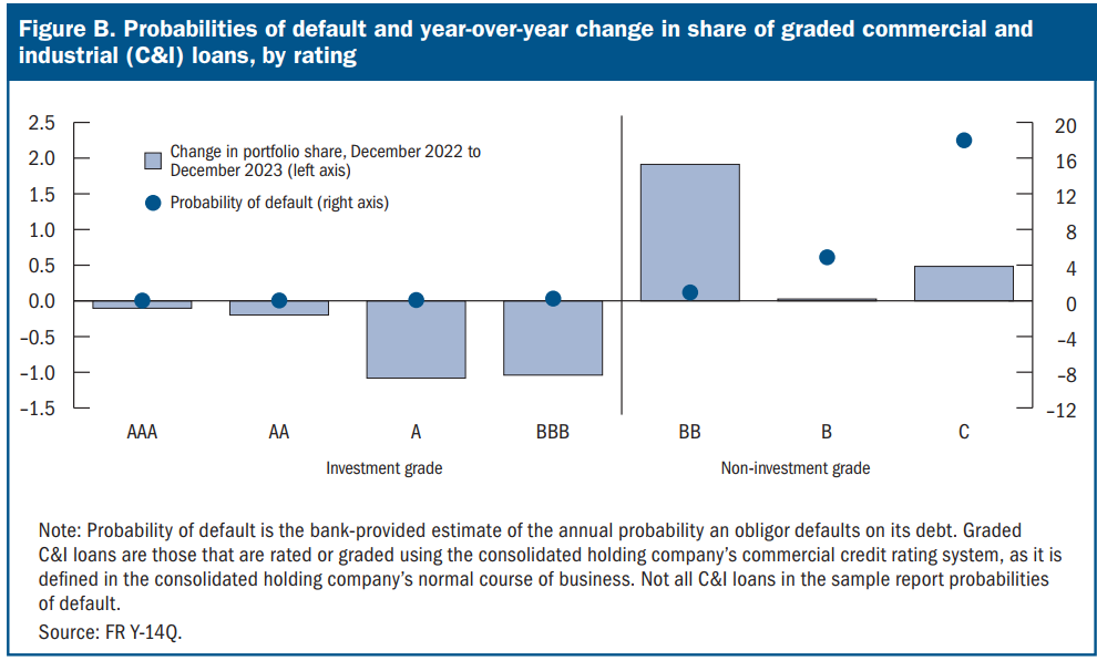 Danh mục tín dụng doanh nghiệp của ngân hàng đang chuyển sang các khoản cho vay rủi ro hơn (non-investment grade tăng).