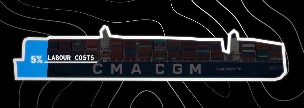 Điều thú vị là không có lý do “hiển nhiên” nào để 3 nước này thắng cuộc. Nếu hỏi đa số, họ sẽ cho rằng đây là bài toán lao động giá rẻ. Nhưng thực tế thì chi phí nhân công chỉ chiếm chưa đến 7% giá trị một siêu tàu container.