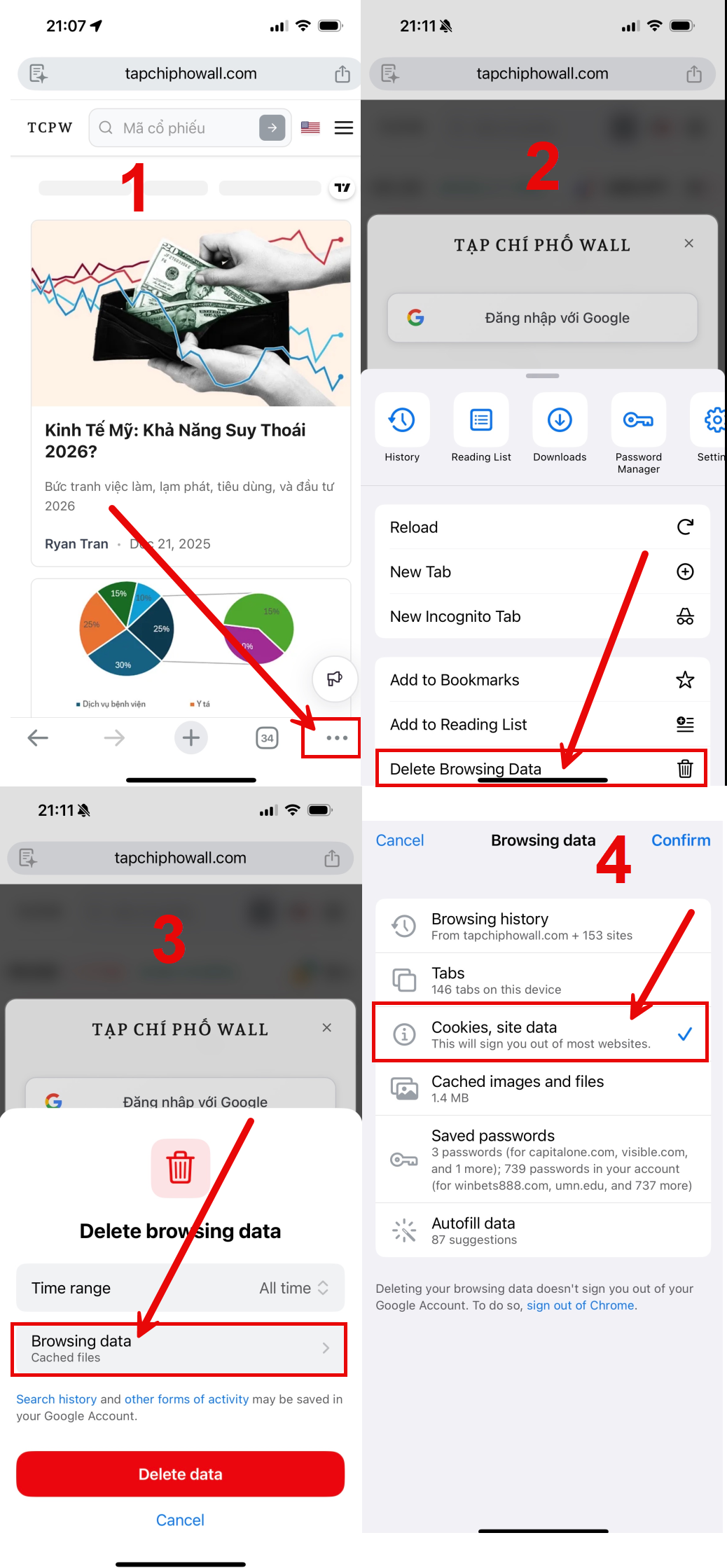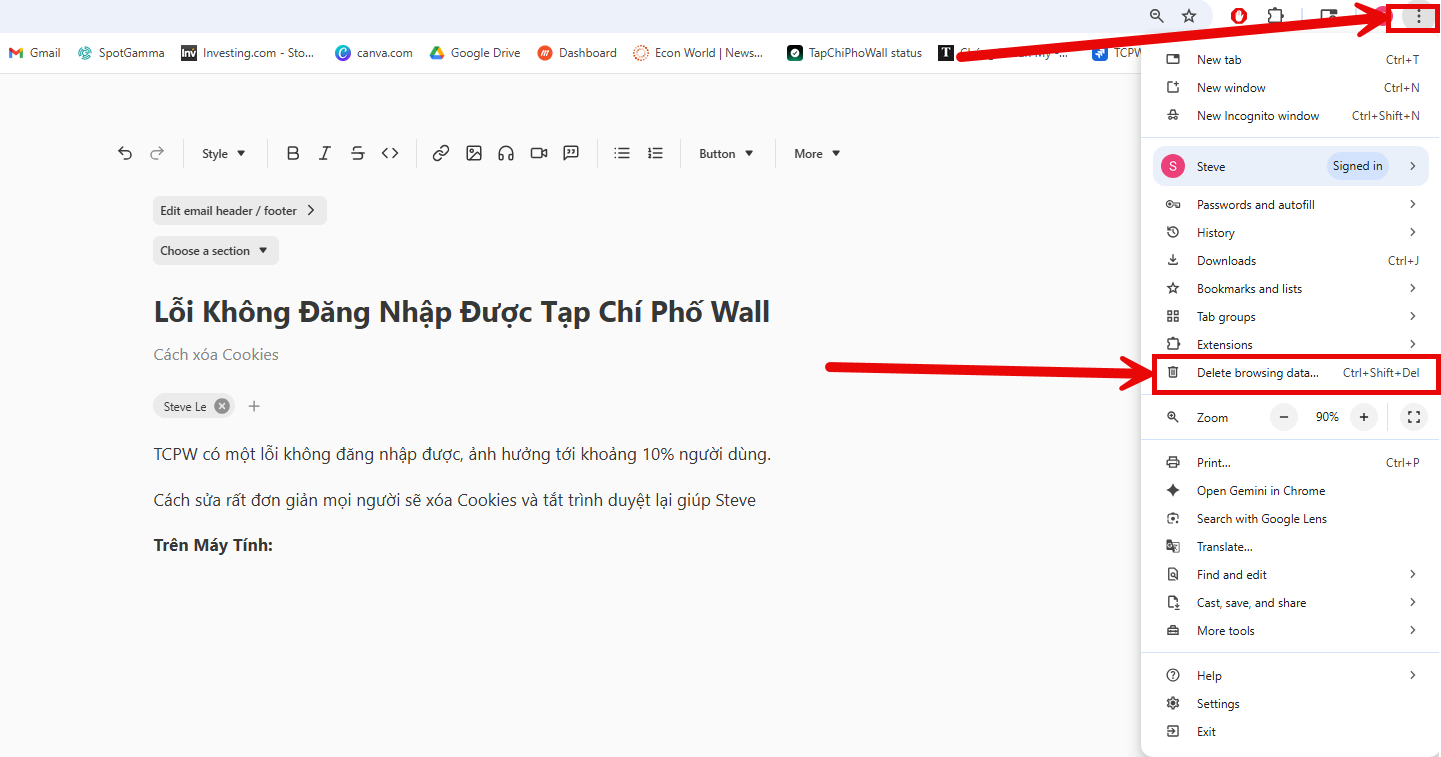 Steve sẽ tiếp tục sửa lỗi, hiện tại có một lỗi quan trọng là nhiều người không đăng nhập được → Phải xóa Cookies như sau: