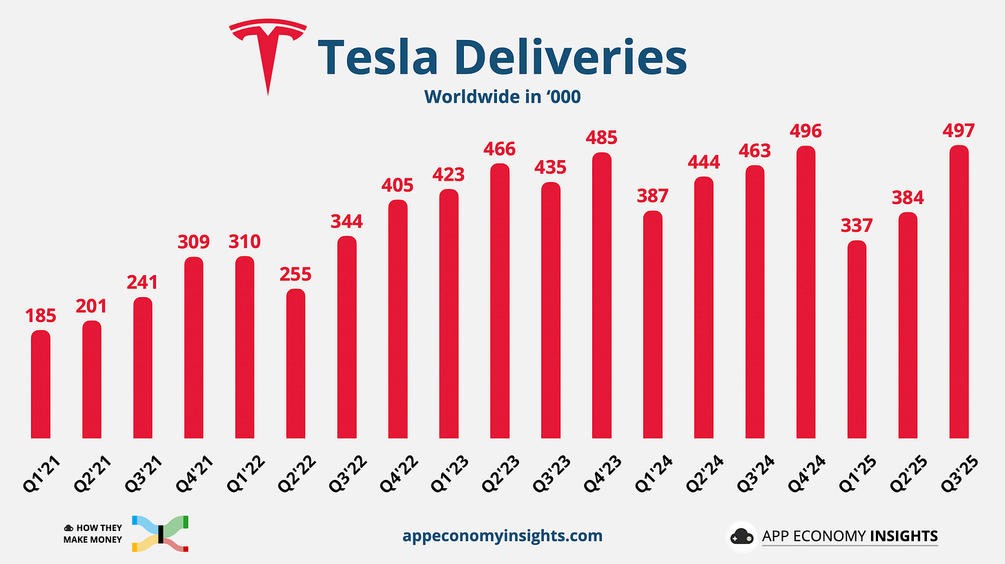497,000 xe giao trong Q3/2025 – con số tưởng như báo hiệu Tesla đã trở lại mạnh mẽ sau nhiều quý trồi sụt.