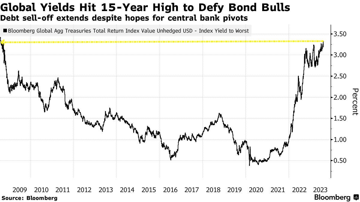 Lợi suất trái phiếu toàn cầu đạt mức cao nhất trong 15 năm qua