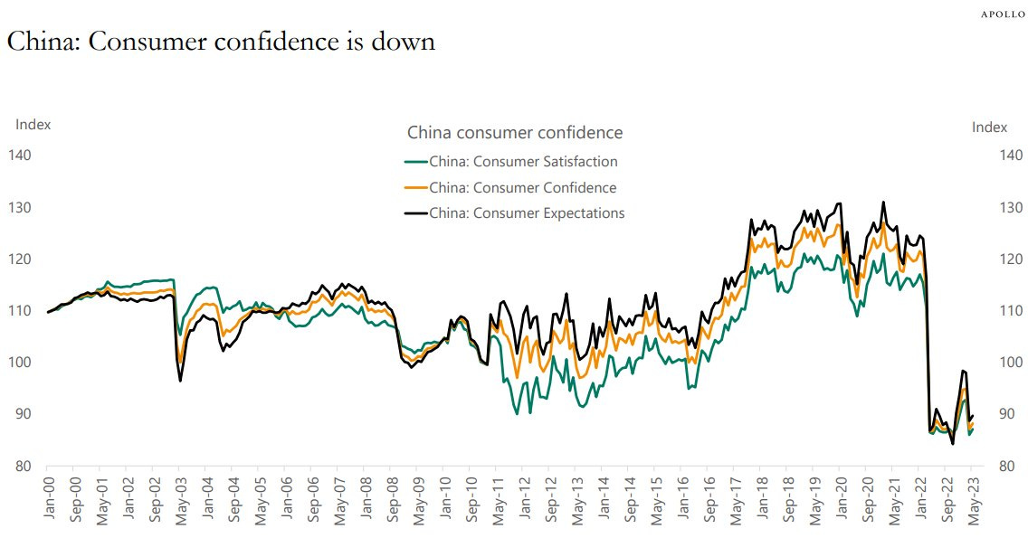 Dữ liệu về niềm tin người tiêu dùng cũng đã sụt giảm nghiêm trọng trong giai đoạn năm 2022-2023, cảnh báo tín hiệu suy thoái.