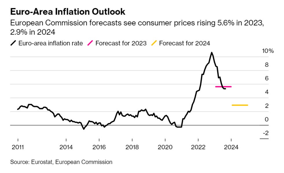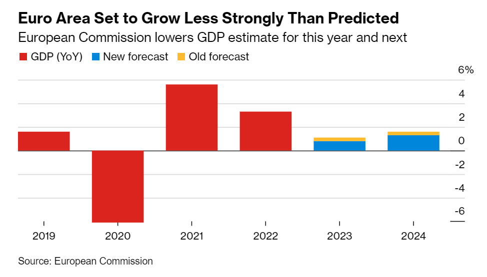 Trái ngược với kỳ vọng soft-landing tích cực từ nền kinh tế Mỹ, phần lớn các quốc gia khác ở châu Âu và châu Á vẫn đang vật lộn với sự sụt giảm xuất khẩu đáng kể. Theo cập nhật từ EU, sản lượng trong nhóm G20 dự kiến tăng 0.8% vào năm 2023 (thấp hơn dự báo 1.1%) hôm thứ Hai (9/11). Triển vọng của năm tới giảm xuống còn 1.3%.