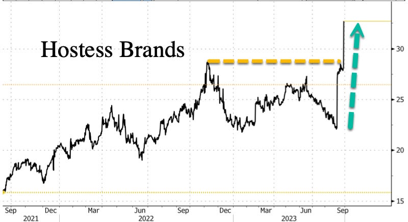 Cổ phiếu Hostess Brands tăng mạnh +17% sau khi được J.M. Smucker mua lại với giá hơn 5.6 tỷ USD.