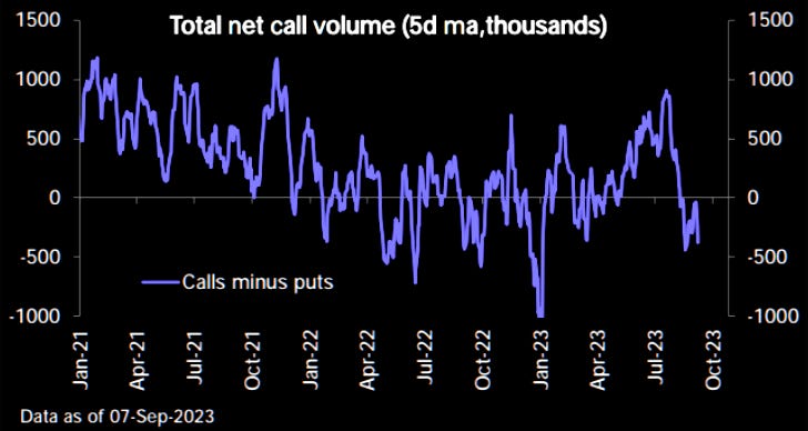 Biên độ giao động trên thị trường giảm khá rõ rệt cùng với thanh khoản, cho thấy phần lớn nhà đầu tư quyết định ngồi ngoài trong phiên giao dịch ngày hôm nay. Nhìn xa hơn, phần lớn lượng call positions đến từ khối AI Mania tháng 6/7 vừa qua đã biến mất gần hết, tạo ra “khoảng lặng” cho khối AI-tech ở cả 2 đầu, kìm VIX nói chung ở mức thấp.