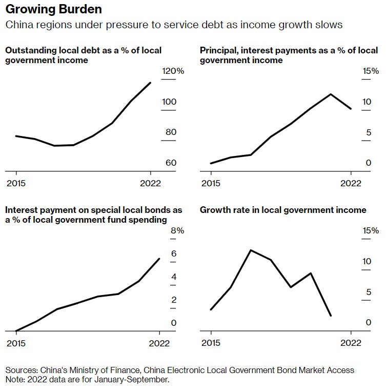 Trong khi thu nhập và tăng trưởng kinh tế đã chậm lại do chính sách Zero Covid: các khoản nợ đã lên đến 120% thu nhập của các chính quyền địa phương.