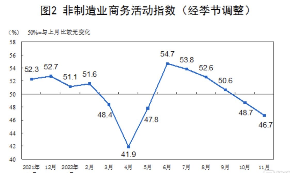 PMI ngành phi sản xuất: 46.7 (giảm so với dự kiến: 48.1, số liệu tháng 10: 48.7)