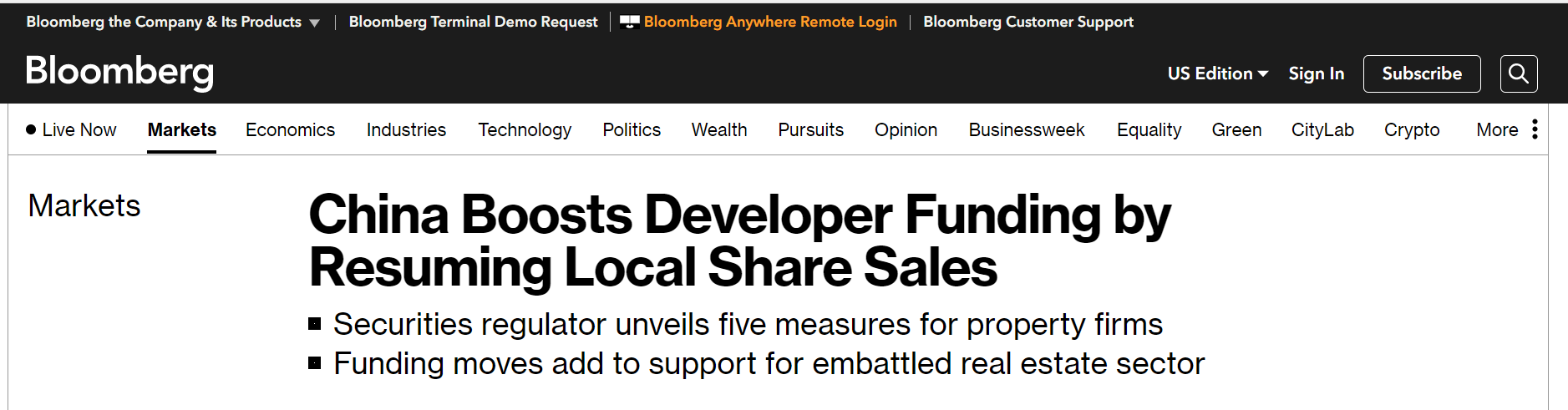 Tuy nhiên thị trường đã đón nhận những tin tích cực hơn khi các ngân hàng lớn Trung Quốc đã tham gia tích cực trong việc cấp vốn cho các nhà phát triển Bất động sản, cùng với chính sách nới lỏng từ chính quyền trong hoạt huy động vốn của ngành này. Chính quyền Bắc Kinh cũng thả lỏng hơn trong chính sách Zero Covid. Điều này khiến thị trường chứng khoán Trung Quốc hồi phục với tốc độ nhanh chóng trong giai đoạn cuối tháng 11 vừa qua.