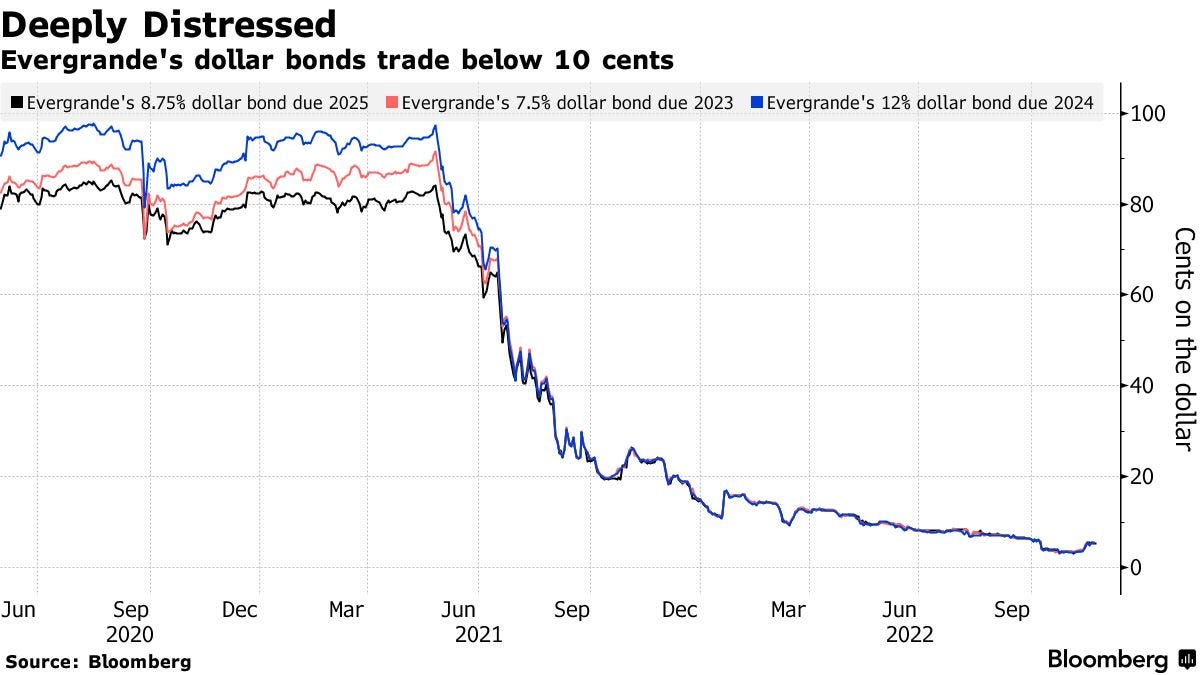 Trái phiếu của Evergrande rớt giá xuống dưới 10cents/bond. Kế hoạch tái cấu trúc nợ của Evergrande đưa ra bao gồm đổi trái phiếu lấy cổ phiếu của tập đoàn này.