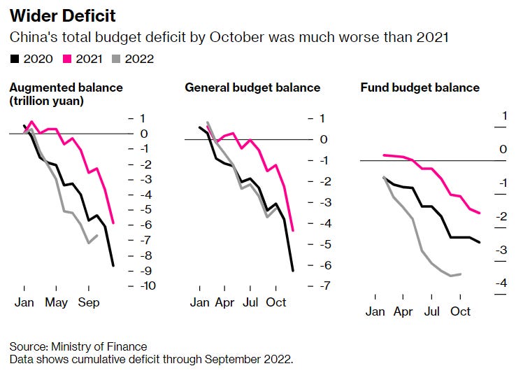Cùng với đó, nền kinh tế của TQ đang dần nguội lạnh với sự sụt giảm của hàng loạt chỉ số PMI, tạo áp lực lên quộc họp Bộ Chính Trị Trung Quốc tháng 12 tới. Bên cạnh đó, Trung Quốc cũng phải đối mặt với cuộc khủng hoảng nợ công đối với chính quyền địa phương và cuộc khủng hoảng bất động sản vẫn đang diễn ra từ nửa cuối năm 2021.