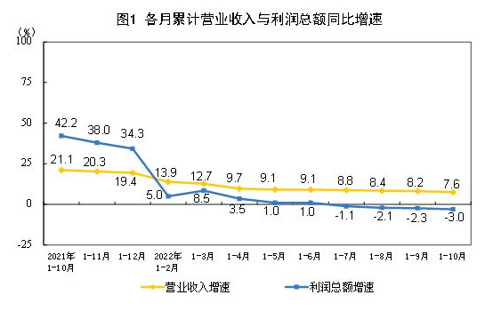 Lợi nhuận công nghiệp giai đoạn tháng 1–10/2022 của Trung Quốc giảm -3.0% so với cùng kỳ năm trước.