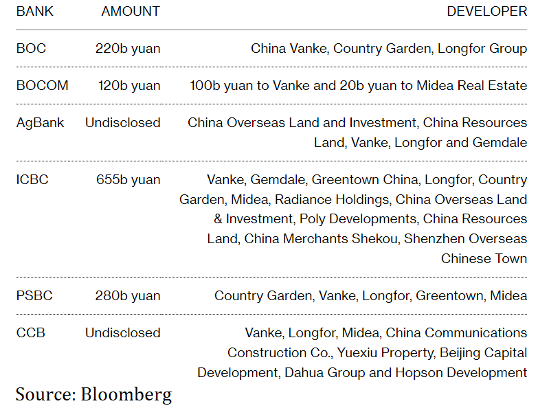 ICBC dẫn đầu gói tín dụng với hạn mức lên đến CNY 655 tỷ (~ USD 93 tỷ) cho 12 nhà phát triển BDS - ngoại trừ Evergrande và Sunac đang trong khủng hoảng.