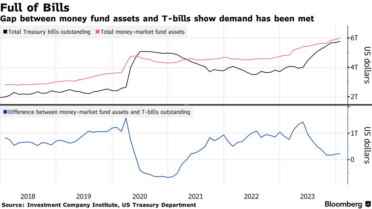 FYI: Điều này cũng khiến cho nhu cầu T-bill còn ở mức cao: hầu hết lượng T-bill khổng lồ được phát hành trong năm qua đều được mua lại bởi MMF.